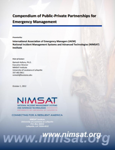 The Public- Private Partnership Compendium is a collaborative effort between the International Association of Emergency Management and the NIMSAT Institute.